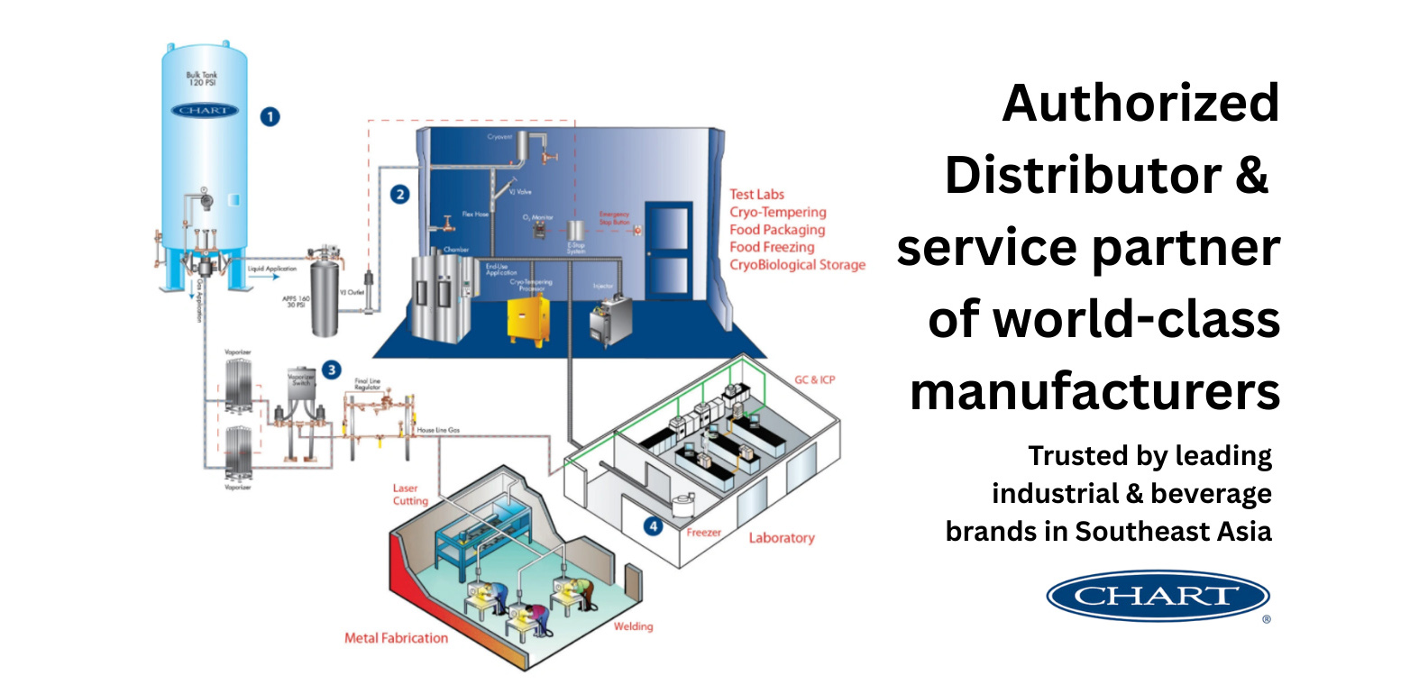 LN₂ tanks, vaporizers, vacuum insulated piping, and complete cryogenic infrastructure solutions powered by Chart Industries technology.